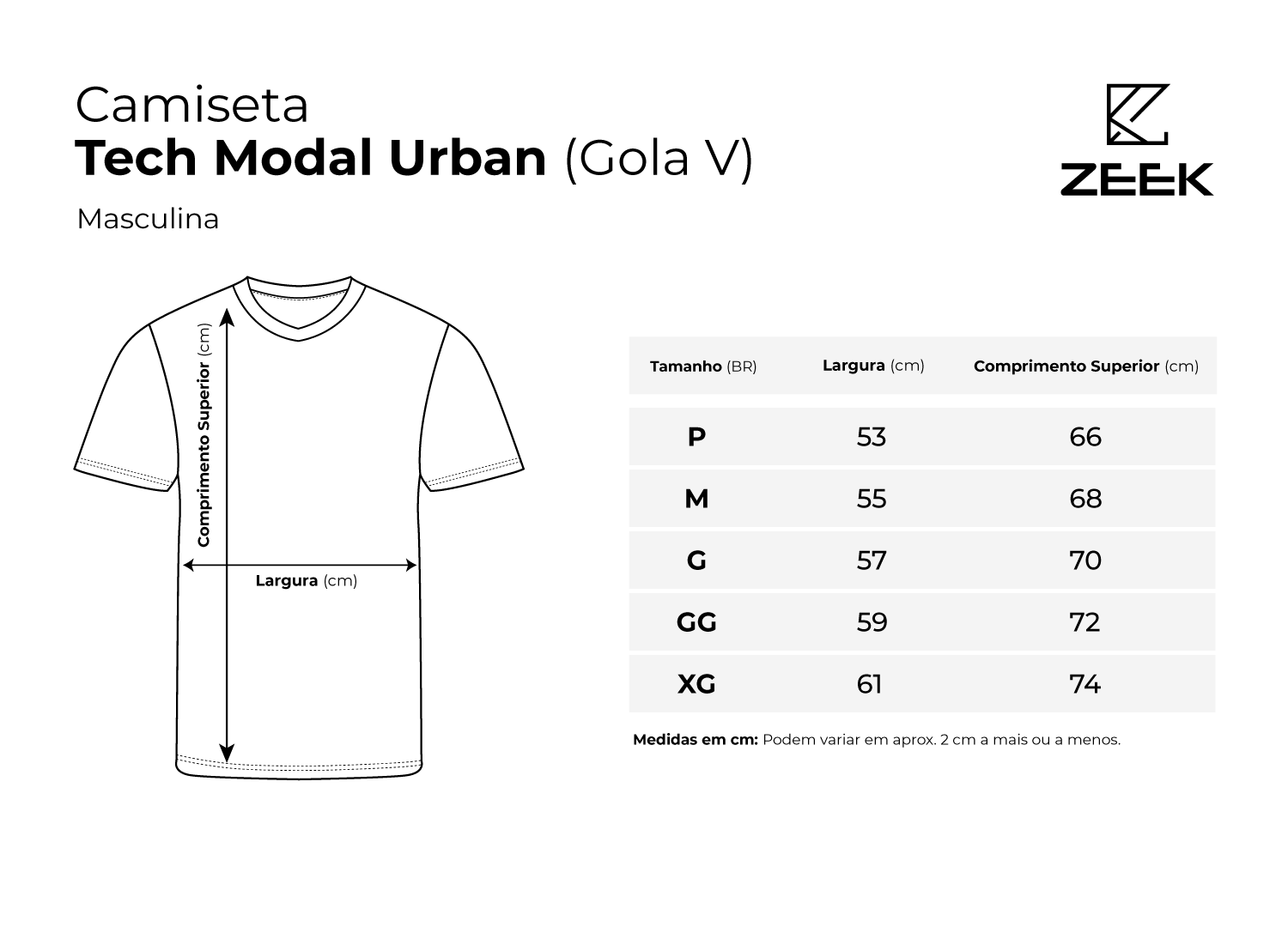 Design Alongado: A gola V moderna da ZEEK possui profundidade equilibrada — elegante, discreta e estruturada para não deformar com o uso.